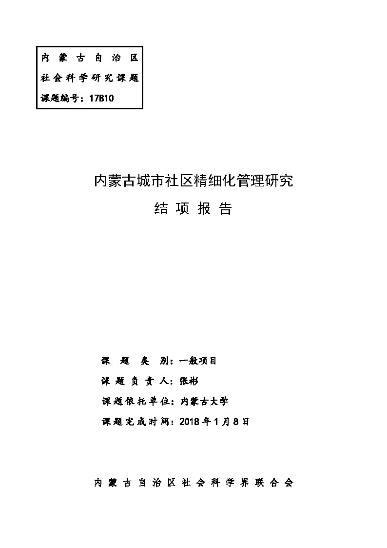 [研究报告] 内蒙古城市社区精细化管理研究结项报告